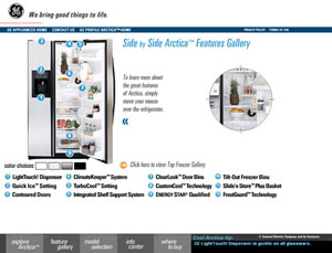 winning site. See it live: http://www.geappliances.com/arctica/ (Note: This content was made in 2001 and appears to be No Longer Available - I may put up a mirror if I can) |