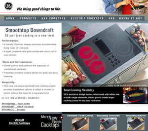 Locator" and their detailed product information pages. See it live: http://www.geappliances.com/cooktop/ |
